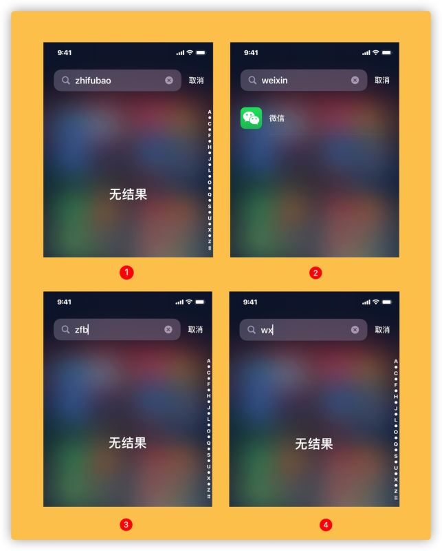 5. app 资源库拼音模糊搜索逻辑混乱:在之前的测试版中,该问题曾经被修复,但正式版依旧出现了该问题,表现为模糊搜索不够准确,例如输入「zfb」「zhifubao」「wx」的拼音均无法搜索到「支付宝」或「微信」,但输入「weixin」却可以搜索到「微信」,拼音模糊搜索的逻辑有些混乱。