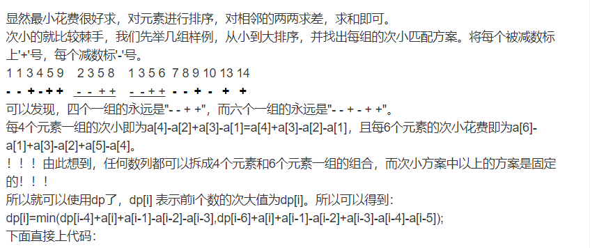 dp[i - 6] + a[i] + a[i - 1] - a[i - 2] + a[i - 3] - a[i - 4] - a[i - 5]);