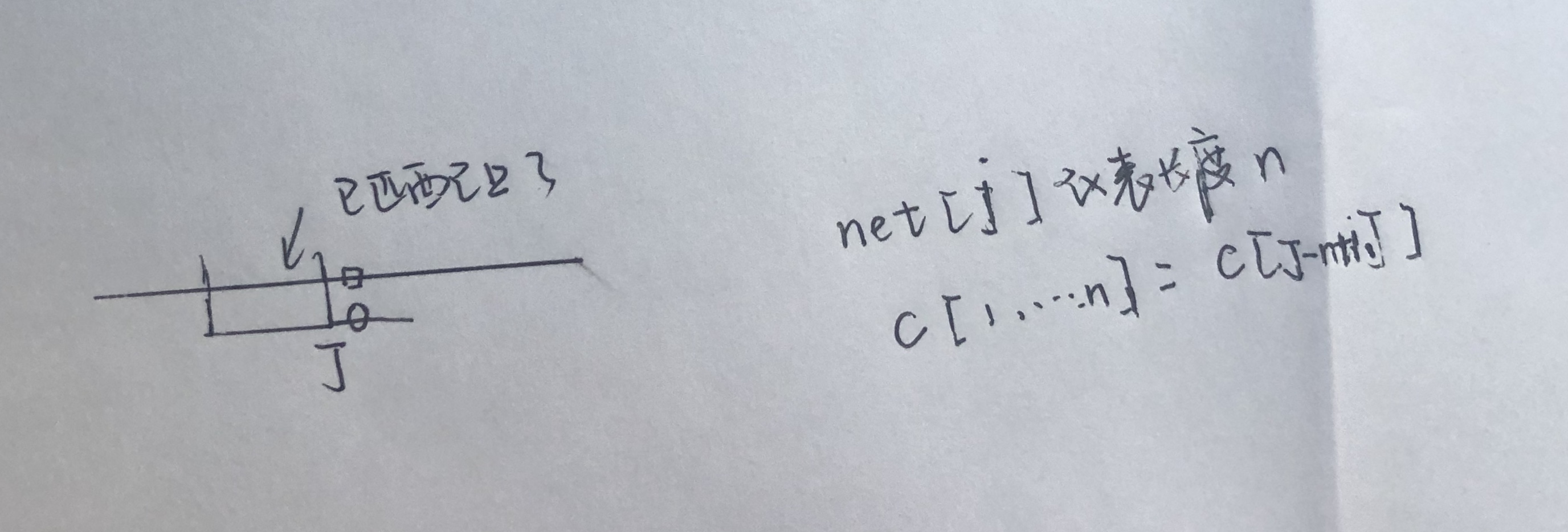 #include<bits/stdc++.h> using namespace std; const int maxn=1e5+10; const int maxm=1e6+10; char p[maxn]; char s[maxm]; int net[maxn]; int n,m; int main() { ios::sync_with_stdio(false); cin.tie(0); cout.tie(0); cin>>n; cin>>p+1; cin>>m; cin>>s+1; for(int i=2,j=0;i<=n;i++){//预处理net数组 while(j&&p[j+1]^p[i]) j=net[j]; if(p[j+1]==p[i]) ++j; net[i]=j; } for(int i=1,j=0;i<=m;i++){ while(j&&p[j+1]^s[i]) j=net[j]; if(p[j+1]==s[i]) ++j; if(j==n){ cout<<i-n<<endl; j=net[j]; } } return 0; }