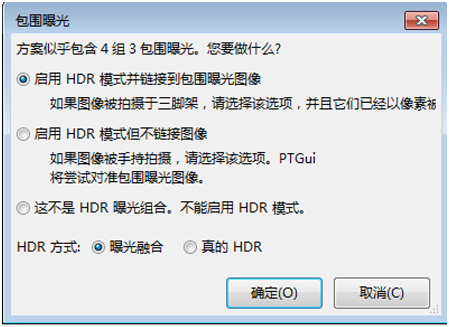 五:对准图像。单击对准图像,选择启用HDR模式并链接到包围曝光图像,HDR方式为曝光融合。
