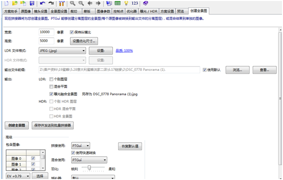 九:创建全景图。有图像大小、格式、图层模式等选项可供选择。确定之后单击“创建全景图”按钮,软件会自动创建全景图片并保存到指定的文件夹