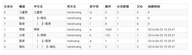提供两种方式的分类树格式,表格和下拉框形式的树形结构