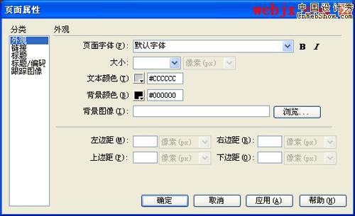 点击“修改”菜单选“页面属性”。系统弹出页面属性对话框(如下图)