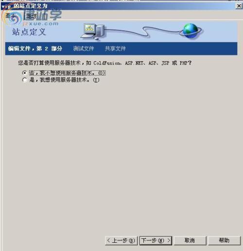 第三步:在弹出的对话框里选择“否,我不想使用服务器技术”。