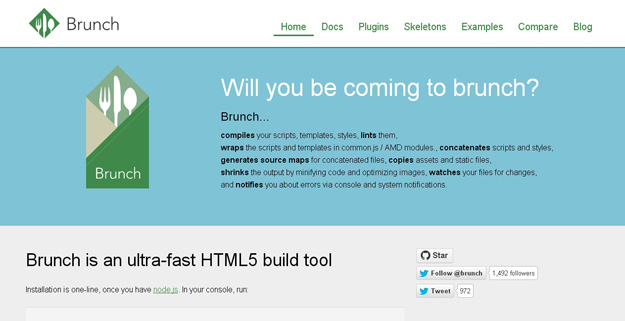 Brunch是强大的汇编程序,它能让你用一种简单而强大的方式构建精致外观的HTML5应用程序。Brunch能快速产出最稳定的应用程序。