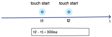 - 双击事件本质是两次快速的单击。也即是说,两次点击的间隔时间很短。通过一定的测试量化后,我们把两次单击的时间间隔设为300毫秒。