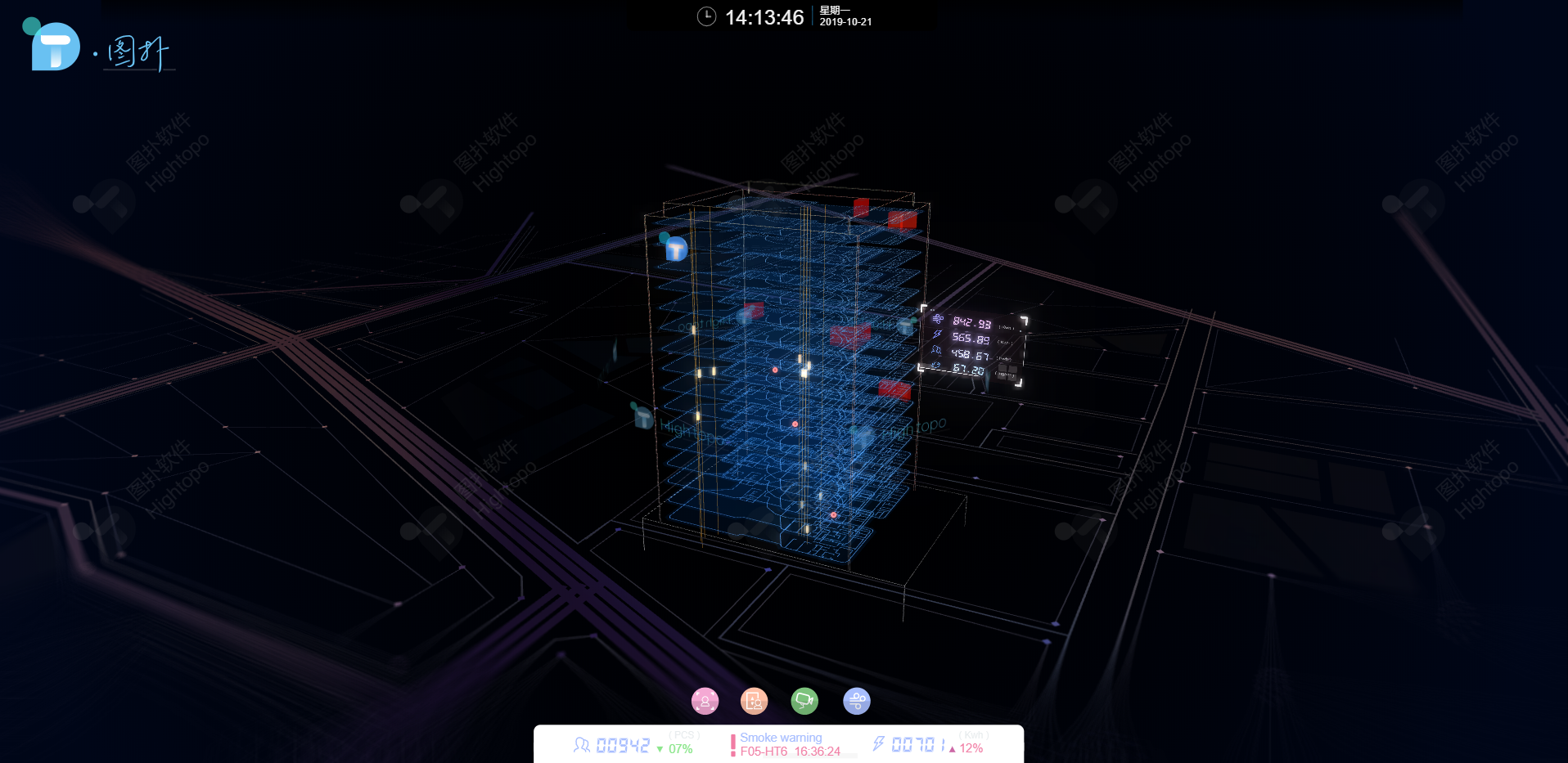 我们还要注意最好给需要交互的图元的鼠标移入移出事件分别设置 view.setcursor('pointer') 和 view.setcursor('default') 来增强交互体验感。同时,制作 2.5d 的图元其实需要花费超出正常 2d 图元数倍的工作量,除了要按照真实角度的透视图去建模外,还需要把每个部分单独制作。这就出现了有可能卡顿的问题,我们做的时候要注意用缓存规则来优化性能,尽可能的把每个细节做好。cacherule 就相当于都用同一个 image,默认规则时:图标名 + 宽 + 高 + 缩放,如果规则判定一致,就会用同一张贴图,如果有其他的需要影响,就多返回一些信息,例如 data.a( 'color' ),这样会额外判定他们这个属性也是否一致,只有都一致的才会用同一张缓存,不一致的话尝试新建缓存贴图,比较适合静态的。