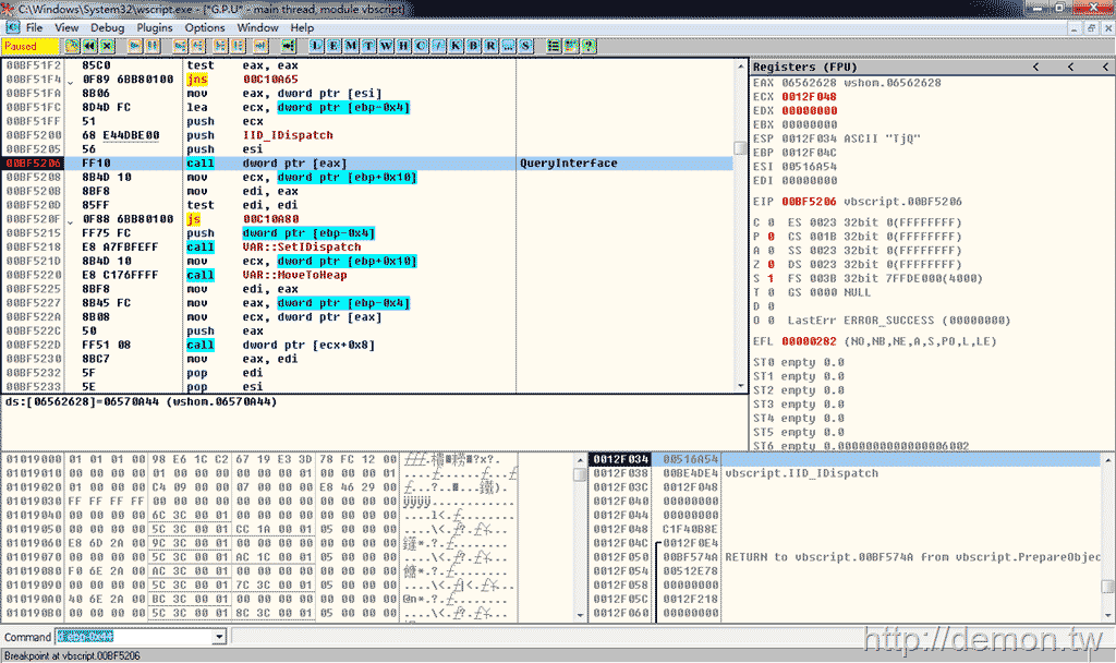 接下去的创建过程不属于脚本应该考虑的范围,有兴趣学 com 的话可以研究研究,很好的一个机制,值得学习。标题: vbs技术内幕:createobject函数