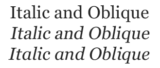 很多考究的字体都会为意大利体定制一套特殊的字体,而不是简单的显示成斜体。比如下面的图片里,三行文字都是Georgia字体。第一行普通;第二行是oblique,也就是斜体;第三行才是真正的italic意大利体。