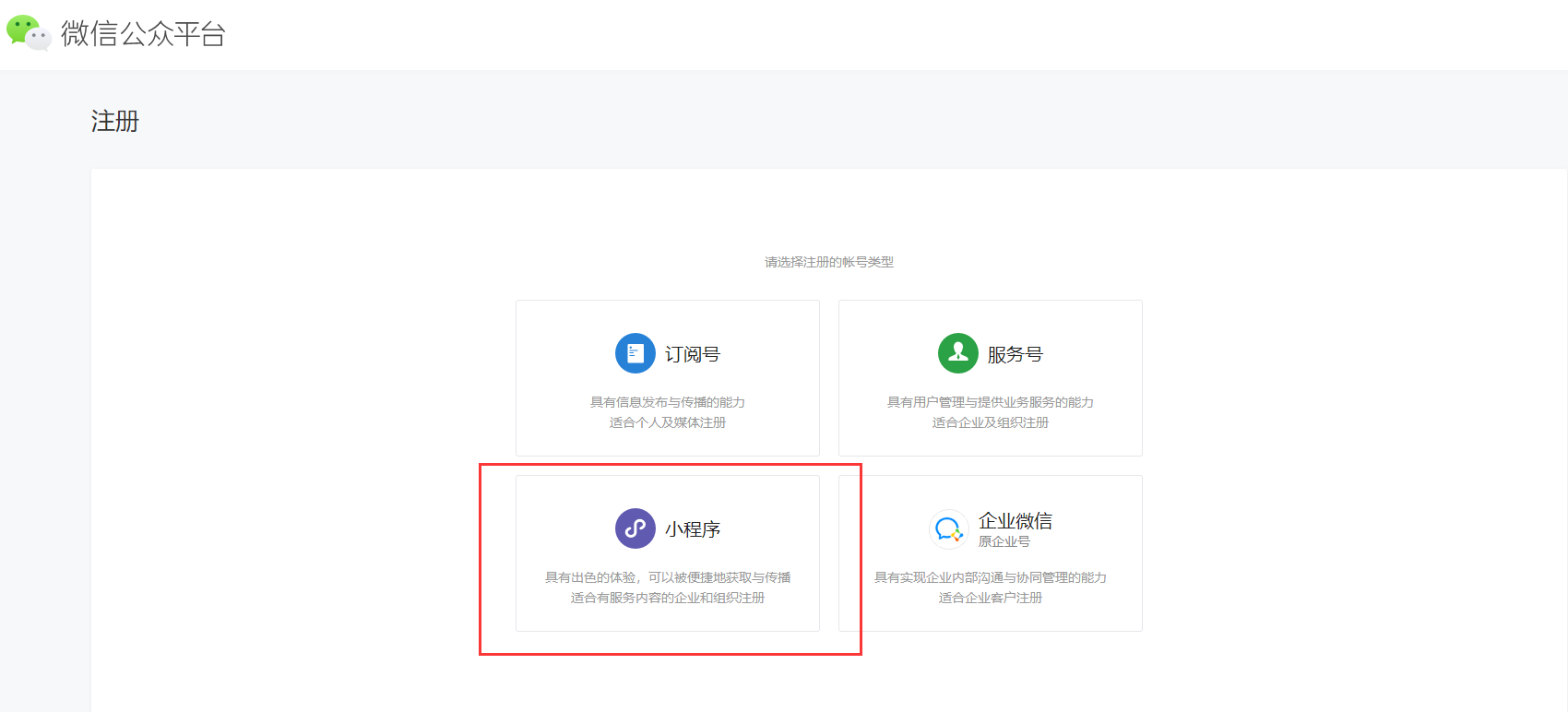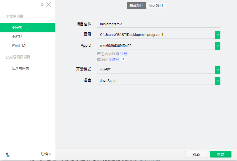 不过现在个人是可以注册小程序的,还是建议注册一个,因为测试号有很多限制