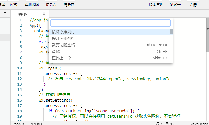 鼠标移动到代码区域,按f1,会出现所有操作及快捷键