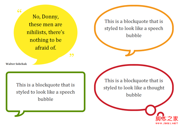 添加一个子元素,例如<blockquote><p>quote</p></blockquote>你甚至可以产生语音泡沫的效果,如: