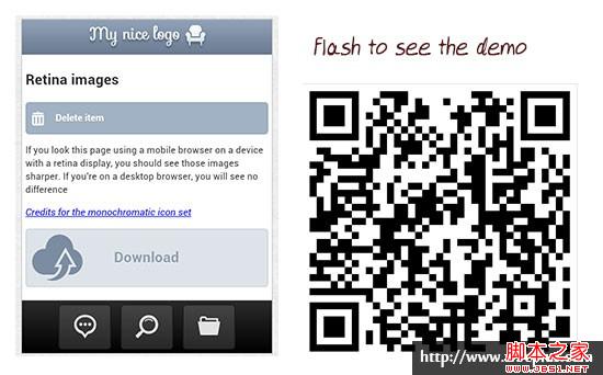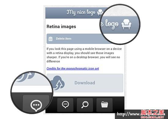 上面介绍的只是样式中处理图片的方法,但是我们在html结构中也会有使用图片的。因为,你需要了解一些图片响应式的技巧。不过使用retina.js 也是一种很简单的方法,只需要在同一个文件目录下加载一张“@2x”的图片,然后同过js脚本来实现。除此之外还有一个retina images 插件可以实现,不过这个插件需要一些其他设置。