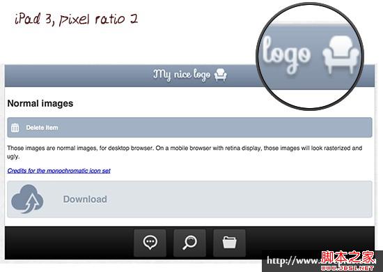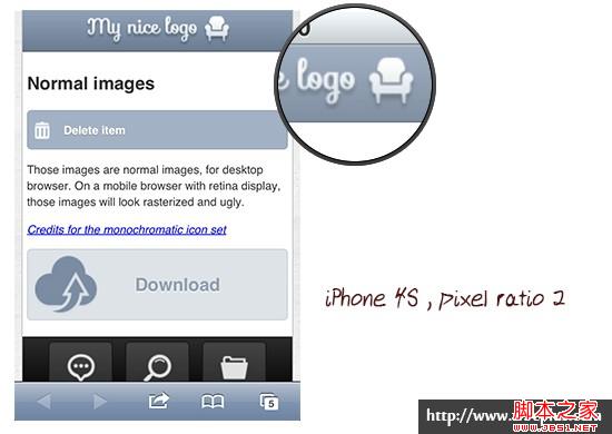 正如我所说的,如果你在一个非视网膜装置上加载页面,看起来是一个不错的效果,但是你在一个retina装置上加载页面,那么页面上的图片将会栅格化,看起来比较模糊。