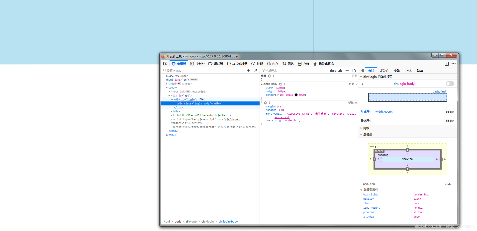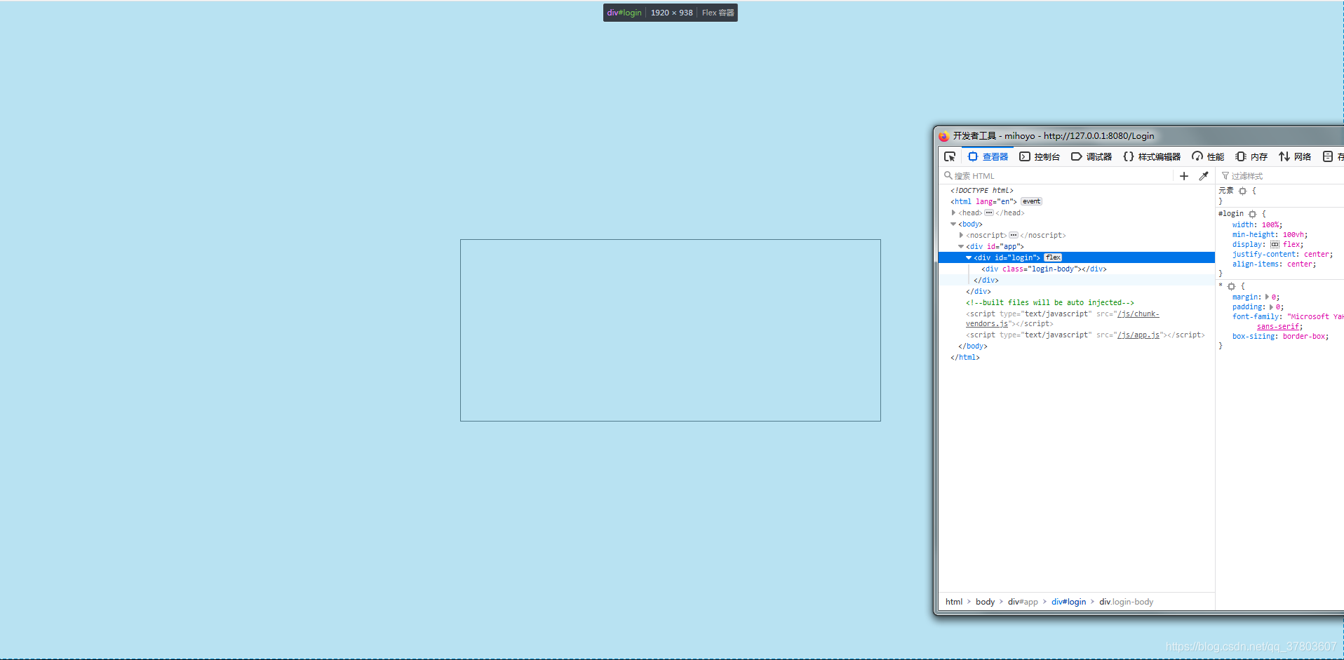 解决:给#login一个min-height: 100vh,配合 display: flex; justify-content: center; align-items: center;实现垂直居中。