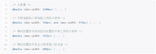 以上是我们对常见的尺寸进行分类后的结果,下图是与之对应的媒体查询条件。