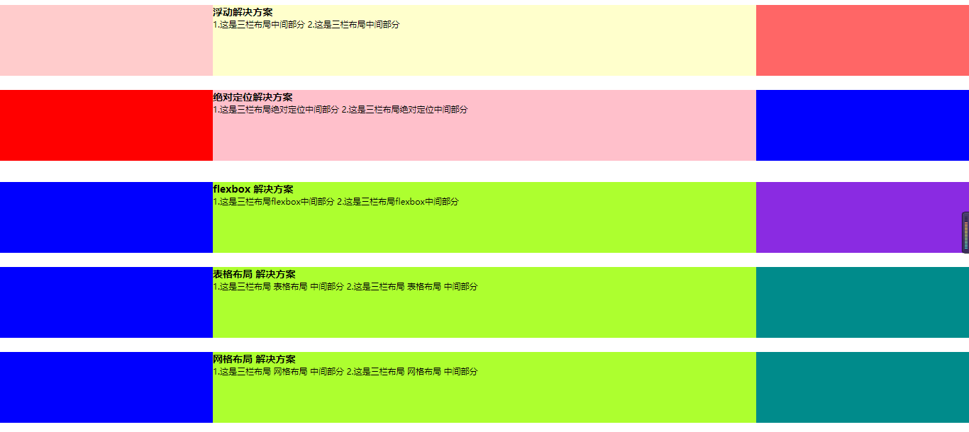 前端一面/面试常考题1-页面布局:假设高度已知,请写出三栏布局,其中左栏、右栏宽度各为300px,中间自适应。