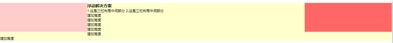 因为浮动的基本原理,中间的内容向左浮动的时候,被左边的块挡住,所以在中间部分排,当文案超出以后,左侧没有遮挡物,就会溢出。