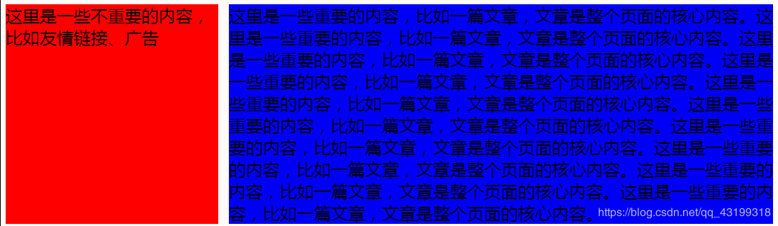 可以在上面的 css 代码中添加媒体查询,当设备的宽度小于 640px 时就隐藏左边的红色区域。