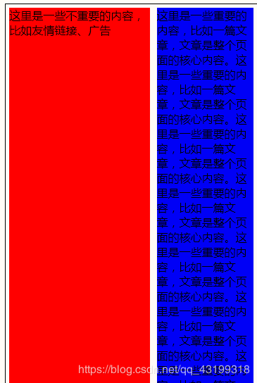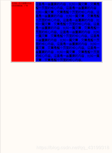 上图中,红色的部分实际上在移动端可以不用显示的,因为它并不是重要的内容,这个时候就可以采用媒体查询的方式当设备的宽度小于某个值之后就隐藏左边红色的区域。