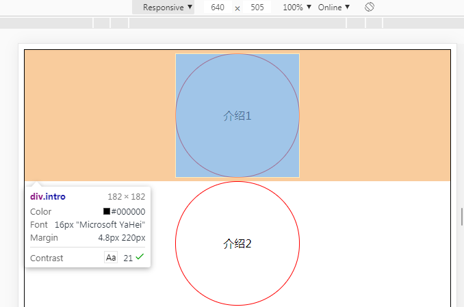 加上上面的媒体查询之后,当设备宽度小于 640px 时就会圆圈就会居中显示。