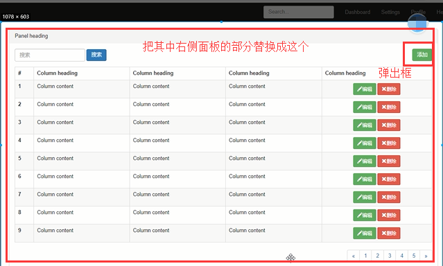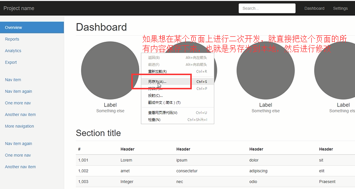 - 后台管理页面(修改dashbord,https://v3.bootcss.com/examples/dashboard/)
