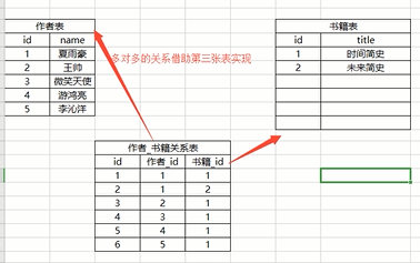 我们设计三张表,书籍、作者、出版社,方便之后django的学习: