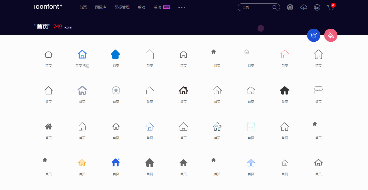 里面有搜索框,首先先是ui来找图标设计,里面图标大都是免费的,而且样式多种多样,打个比方我们搜索一个首页的图标。