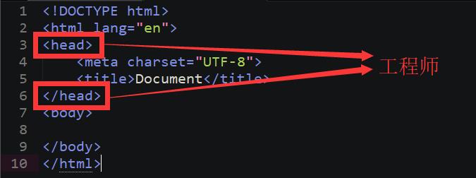 盖房子一定要现有好的地基,好的地基是房屋的保障,但是我们房屋的地基没有好坏之分,所以我们不需要去考虑,不过还有一点需要注意,我们在敲代码的时候会发现,在地基(ps.<html></html>)标签上还有一个标签,这个标签跟地基(ps.<html></html>)、工程师(ps.<head></head>)、包工头(ps.<body></body>)不一样,它不是成双成对的出现,至于原因,下一次再跟大家介绍,现在先跟大家说说它的用途,还拿盖房子来说,如果我们盖的房子是一个商务房,那么它会在一个小区,小区门口会有小区的名字;如果我们盖的是一个商场,那么我们走进商场的时候也会一眼看见商场的名字,这个标签就像名字一样,一般情况下会是<!doctype html>,它的意思是使用html代码进行编写