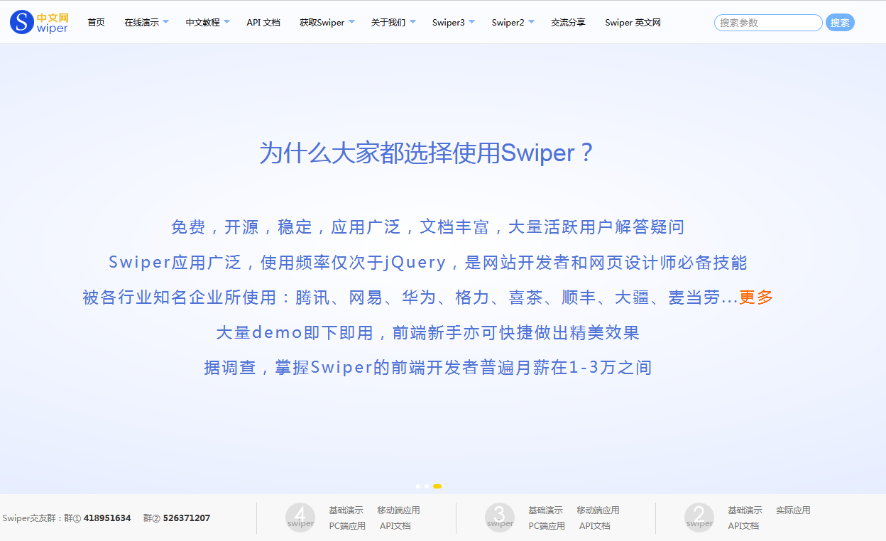 至于为什么使用swiper,而不是自己手写,请看下面官网的截图:
