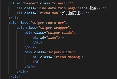 首先应该是我的dom文档结构。请看下面的截图,为什么是截图,因为截图的时候,我用编辑器把代码折叠了,这样能更好的看到swiper的dom结构