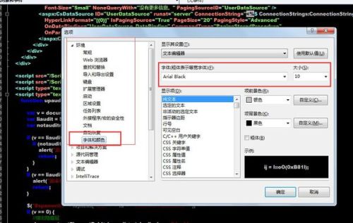 在左侧的“环境”的“字体和颜色”,点击即可在右侧打开。