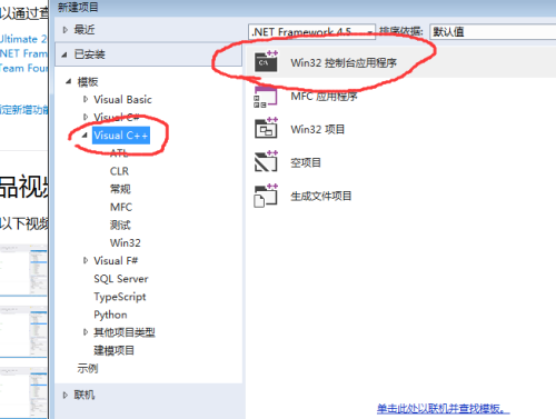 然后弹出:新建项目 窗口,点Visual C++,再点 控制台应用程序