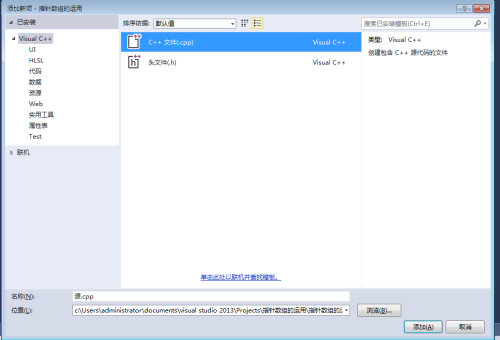 然后右边点选 源文件 右键,添加,新建项,然后点 C++文件,添加。完成,之后就可以写了。