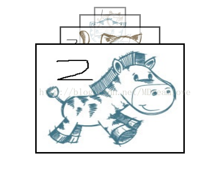 页面文档载入后,为第一张图片添加class属性值为img1,为第二张图片添加class属性值img2,为第三张图片添加class属性img3,为第四张图片添加class属性值img4,这会使得每张图片的下半部分被上一张更大的图片给覆盖住。