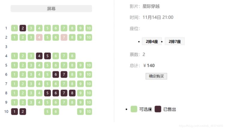 jquery实现影院选座订座效果,供大家参考,具体内容如下