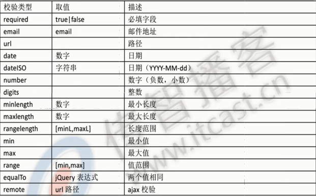 使用jQuery实现表单校验:(单独拿出来介绍表单校验,是因为内容比较多,知识点较多);