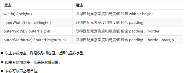 注意:有了这套 api 我们将可以快速获取和子的宽高,至于其他属性想要获取和设置,还要使用 css() 等方法配合。