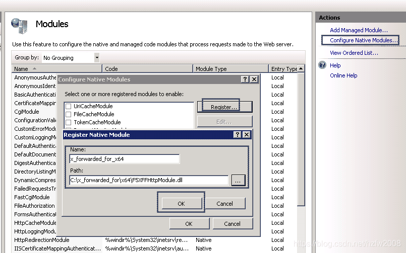 单击配置本机模块,然后在弹出的对话框中,单击注册。