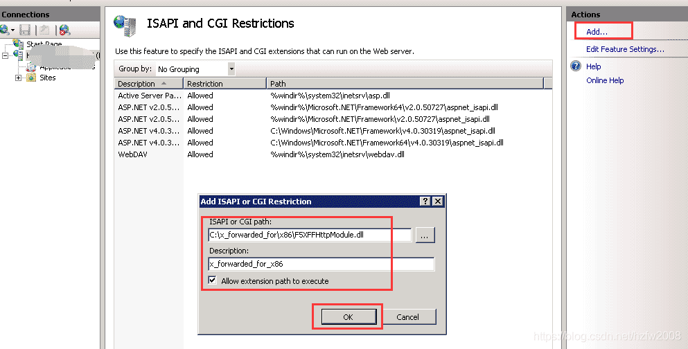 为添加的两个文件授权允许运行isapi和cgi扩展。