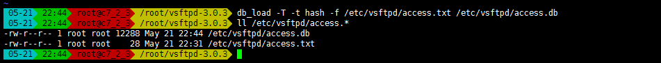 - db_load -t -t hash -f /etc/vsftpd/access.txt /etc/vsftpd/access.db