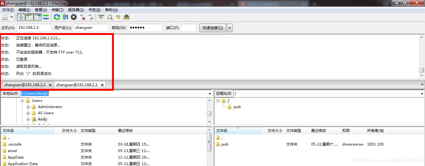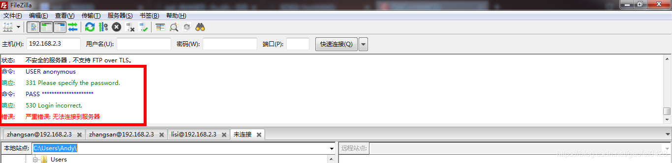 - 匿名用户形式:默认安装的情况下,系统只提供匿名用户访问,只需要输入用户anonymous/ftp,并将自己的email作为口令即可登录。