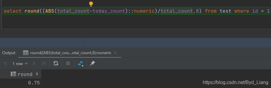 计算结果取两位小数(方便条件筛选):round((abs(a-b)::numeric / a), 2) * 100 < 10