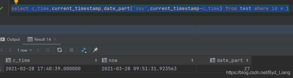 date_part('day', current_timestamp - time1) 两个时间相差的天数
