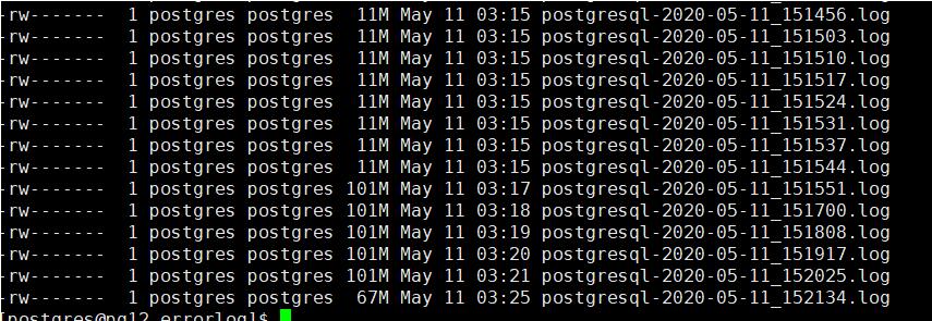 在搭建完pg后,系统上线前并无问题,在系统上线后第二天,有人反馈pg的日志将系统的磁盘空间大量的占用,并且7 分钟就产生一个日志文件,后续为了减少相关的日志的数量较快的增长,做了如下修改
