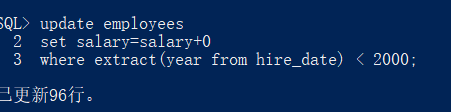 5.在EMPLOYEES表中,将雇用时间在2000年以前的员工的工资上调300。
