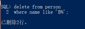 7.删除PERSON中,所有NAME以B开头的员工的记录。