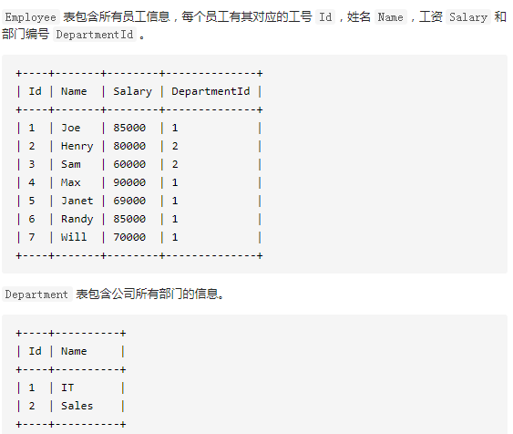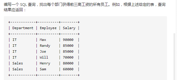 WHERE e1.Salary<=e2.Salary 一定是小于等于,不然就会缺失自己的这条记录,例如张三是IT部工资最高的,如果是e1.Salary<e2.Salary ,则不会输出时不会返回张三这条记录。