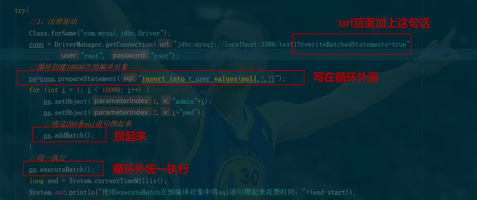 conn = DriverManager.getConnection("jdbc:mysql://localhost:3306/test1?rewriteBatchedStatements=true",