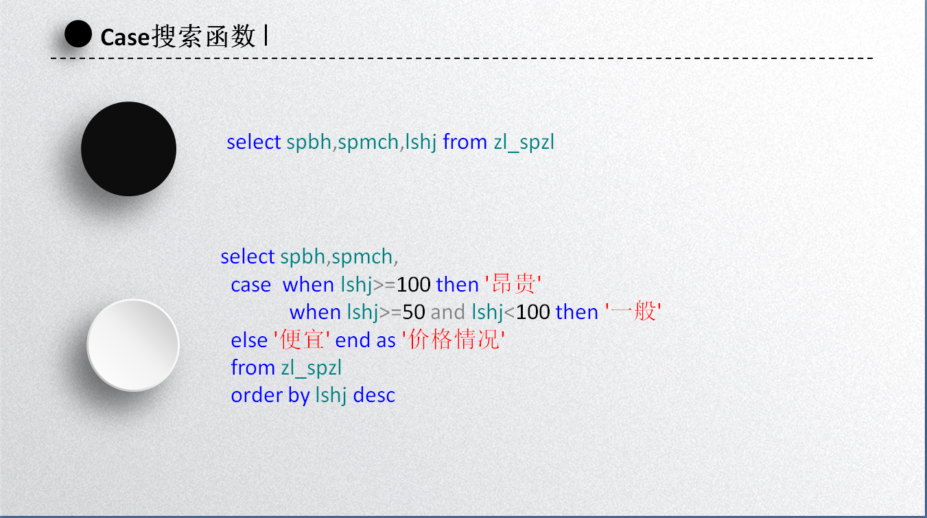 提示:通过case函数依据商品的价格对商品进行分组。